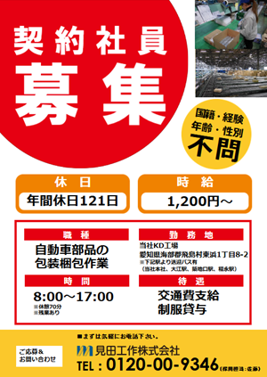 - 自動車開発部品の包装梱包スタッフを募集しています。詳細を見る